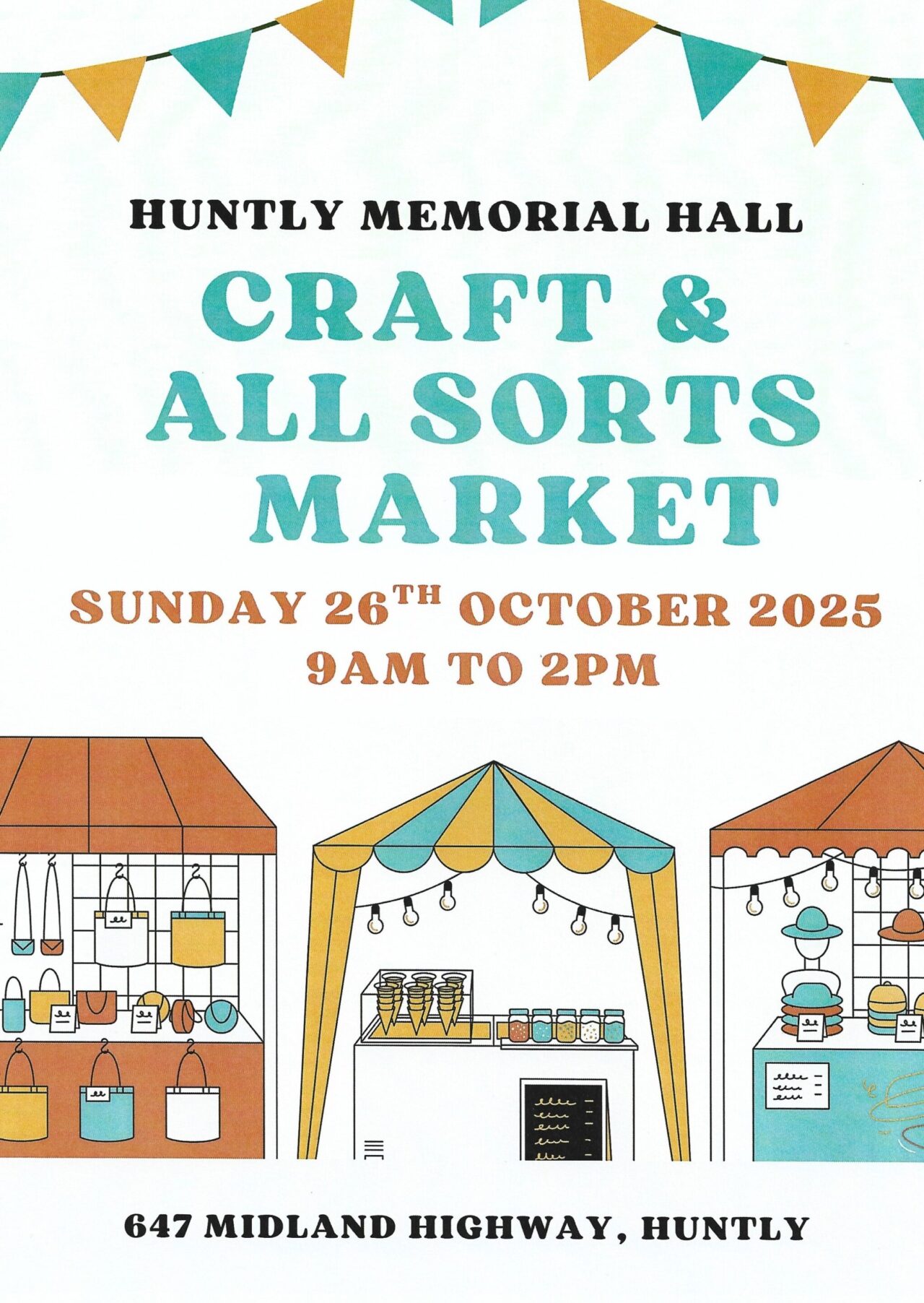Bring your family and friends and grab something for yourself or someone special to you. This is a great opportunity to get a head start on Christmas and find some unique pressies for everyone, all while supporting local crafters, producers, businesses and community groups. See you on Sunday the 26th of October at the Huntly Memorial Hall.